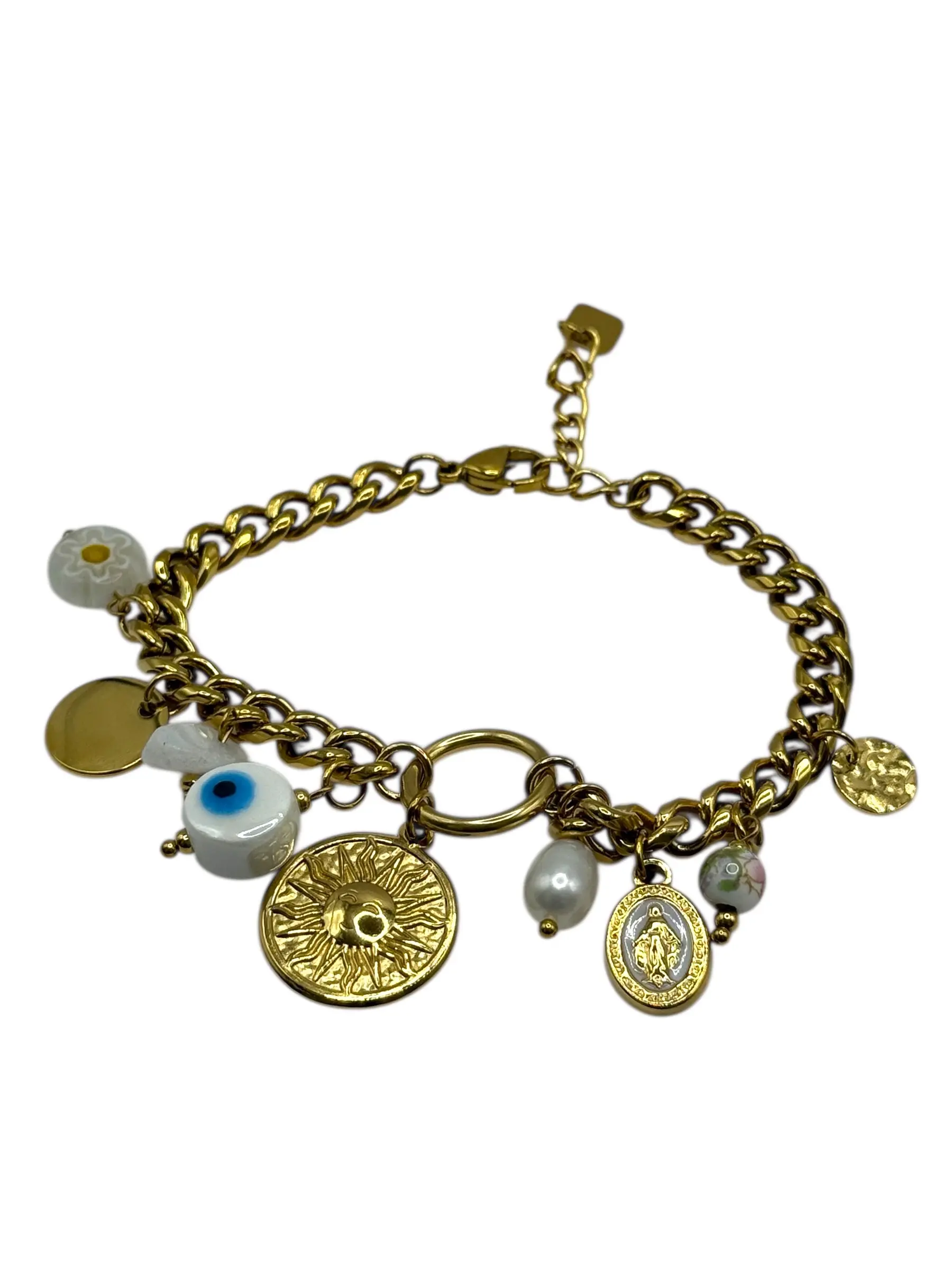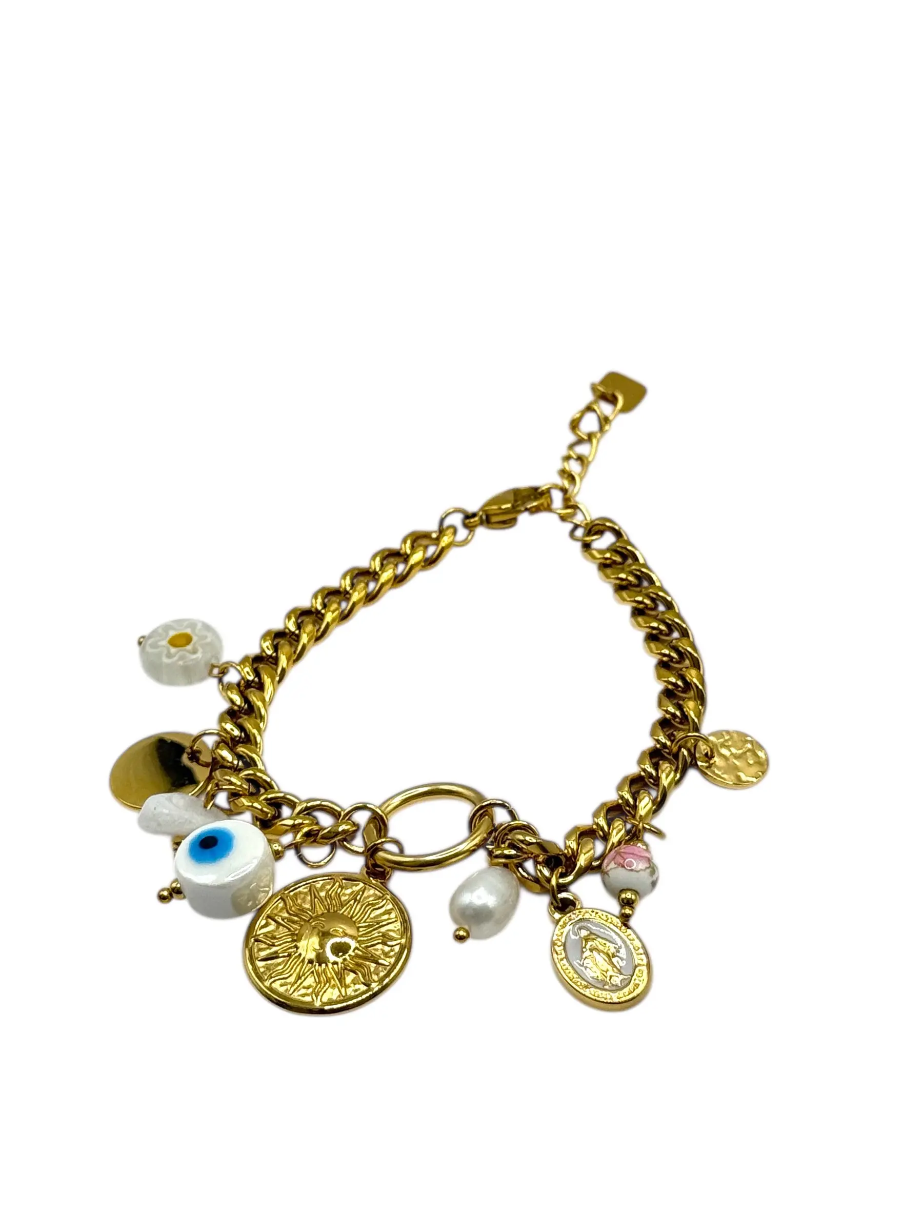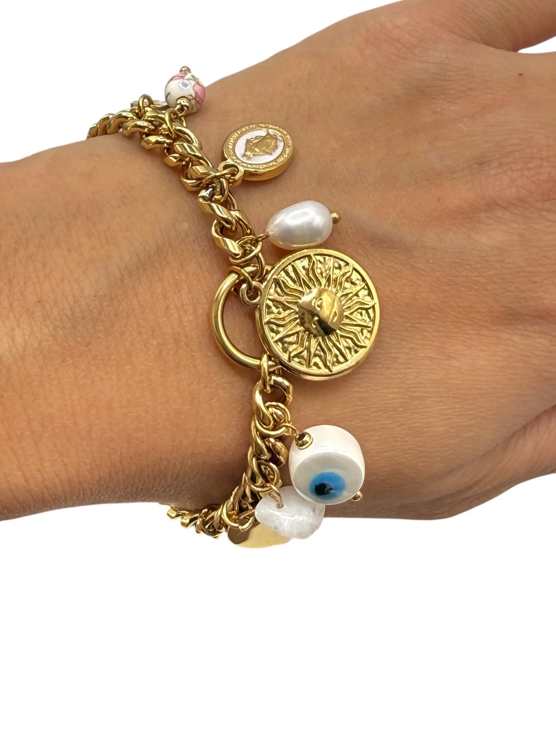 Bracelet charms soleil œil bleu perle