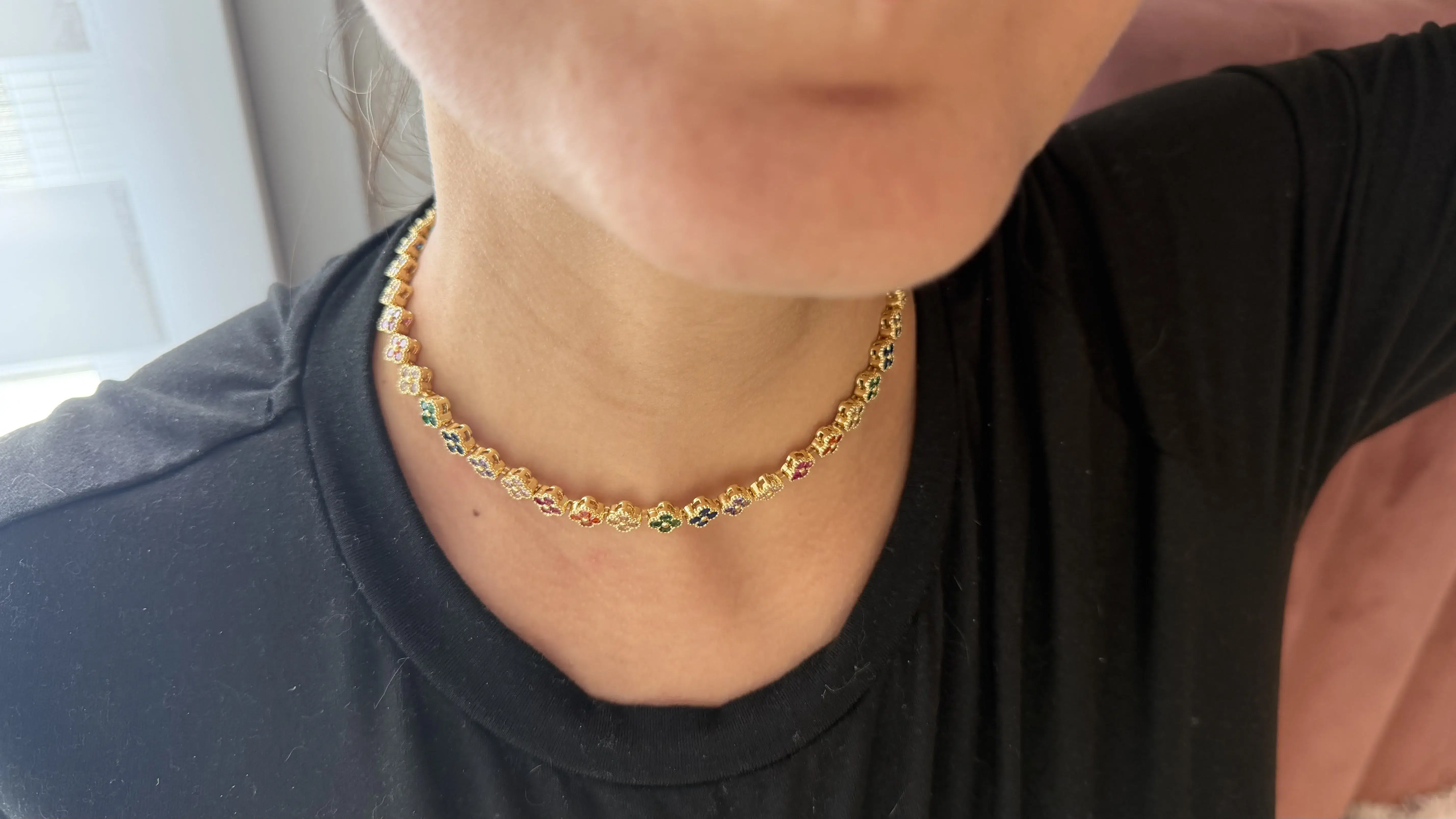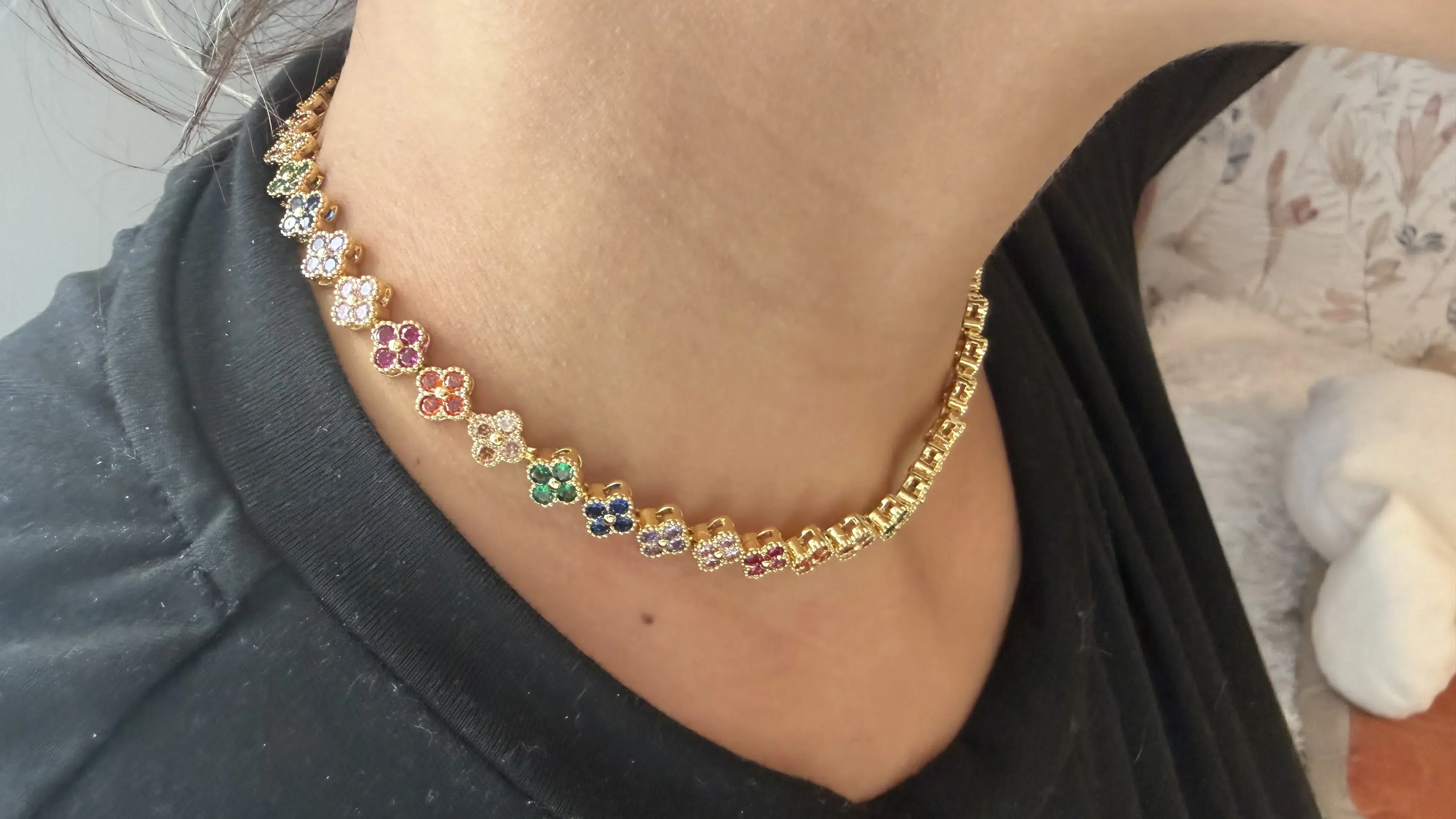 Chaque petite fleur ornant ce collier est minutieusement détaillée, créant un effet kaleidoscope de couleurs qui attire les regards tout en apportant une touche féminine et raffinée. Léger, confortable et résistant à l’usure, ce collier est parfait pour celles qui aiment les accessoires délicats mais significatifs.