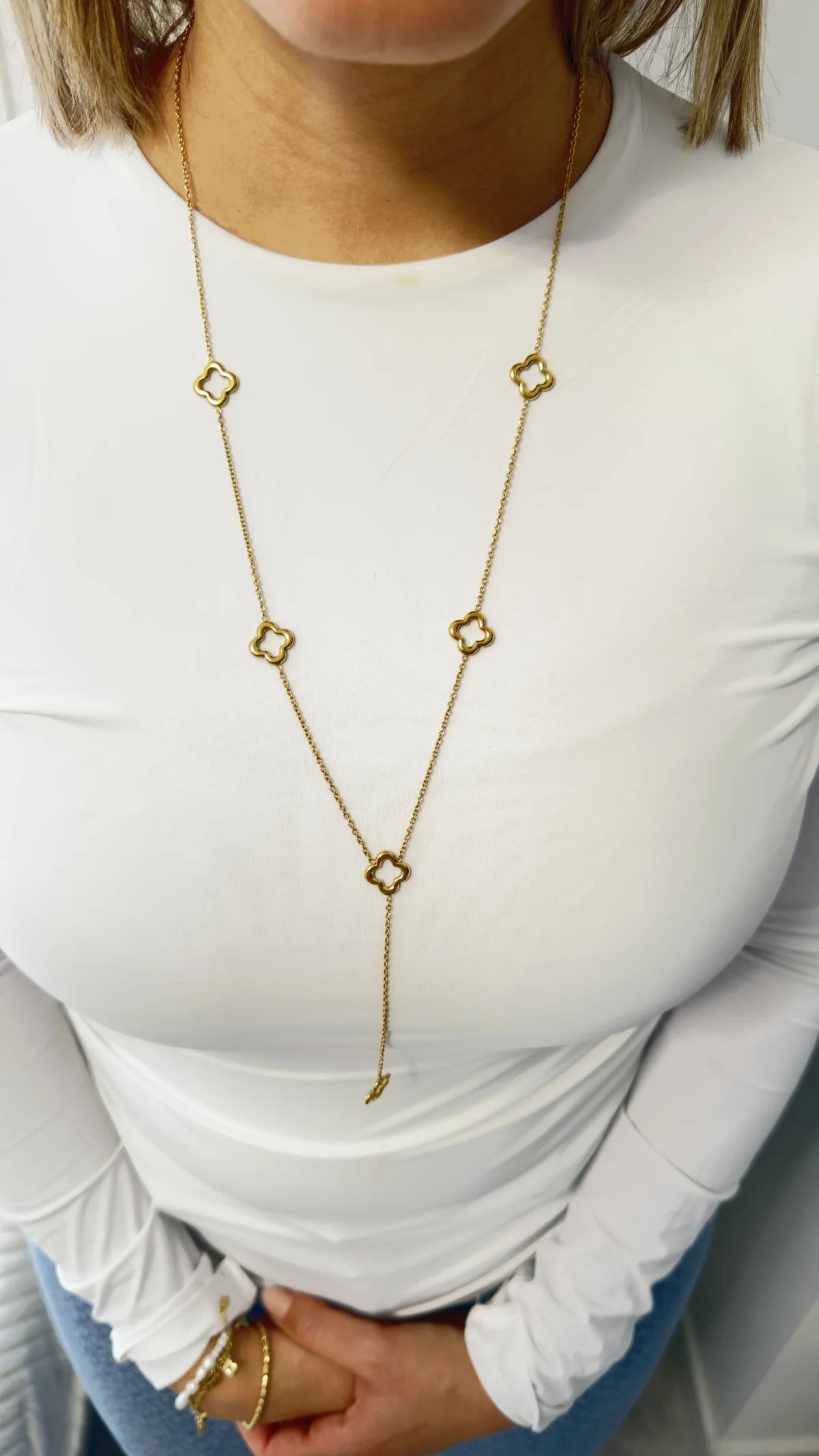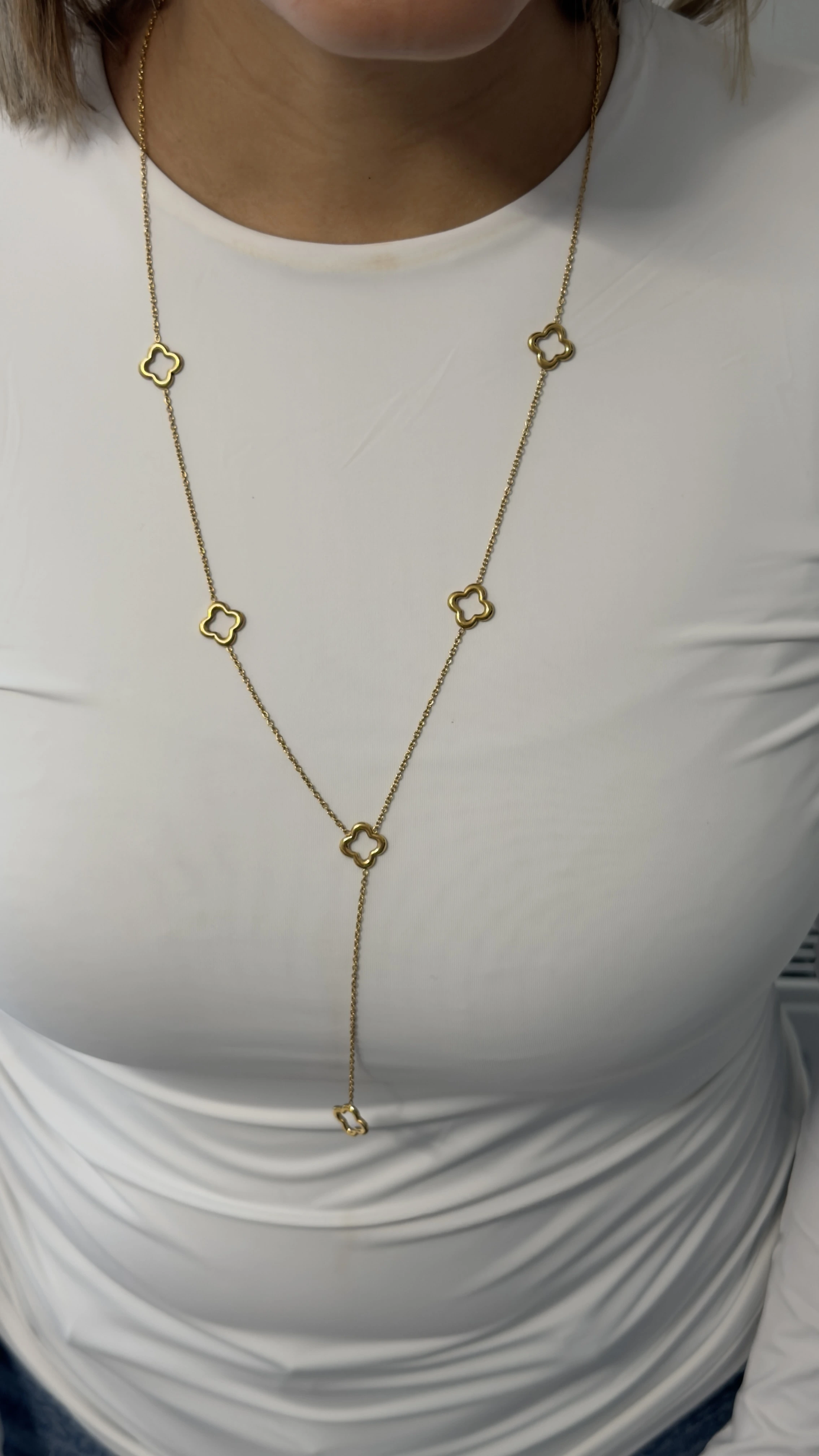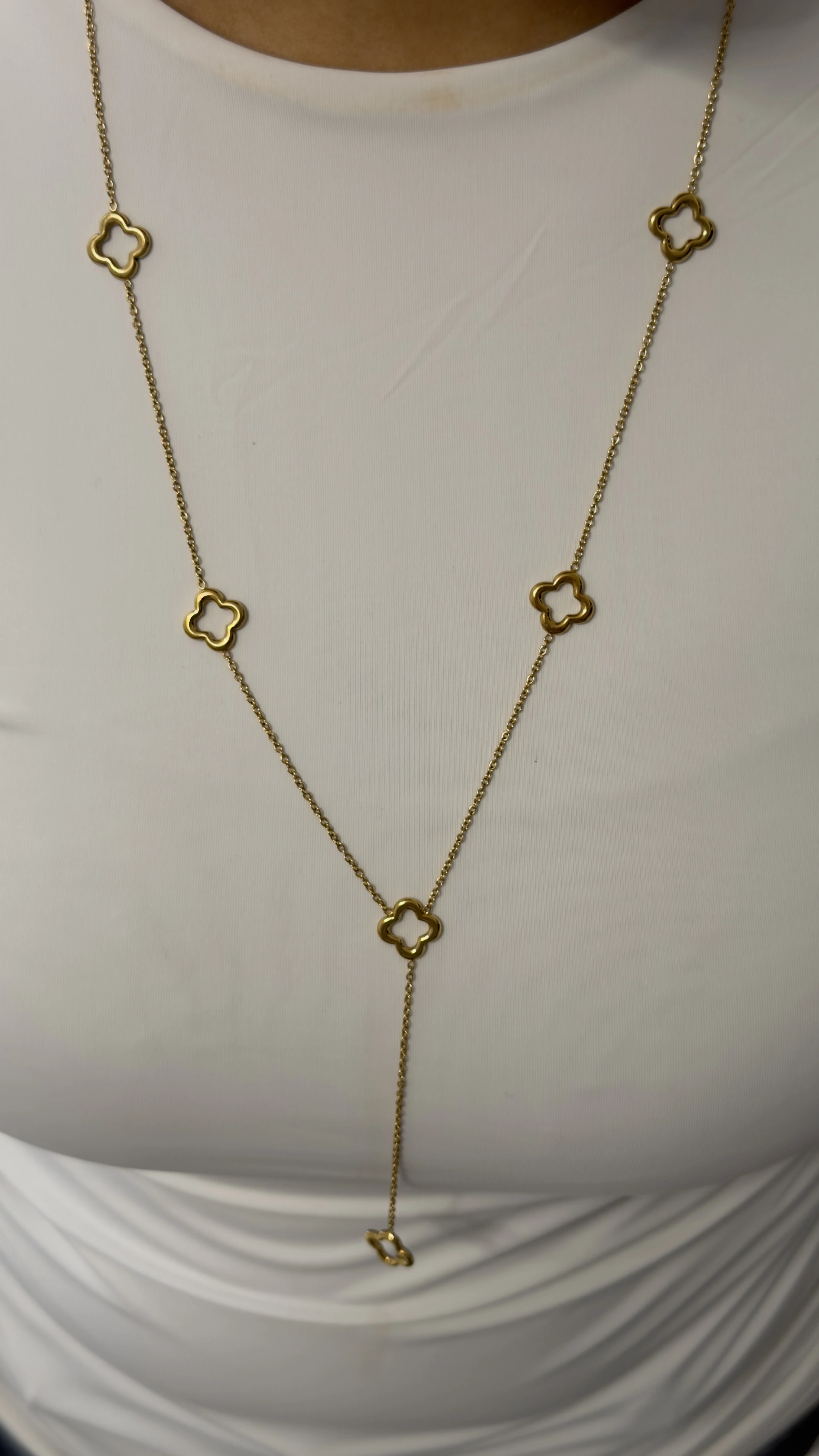 🌿 Collier Sautoir Trèfles Long Doré : L’Élégance en Mouvement